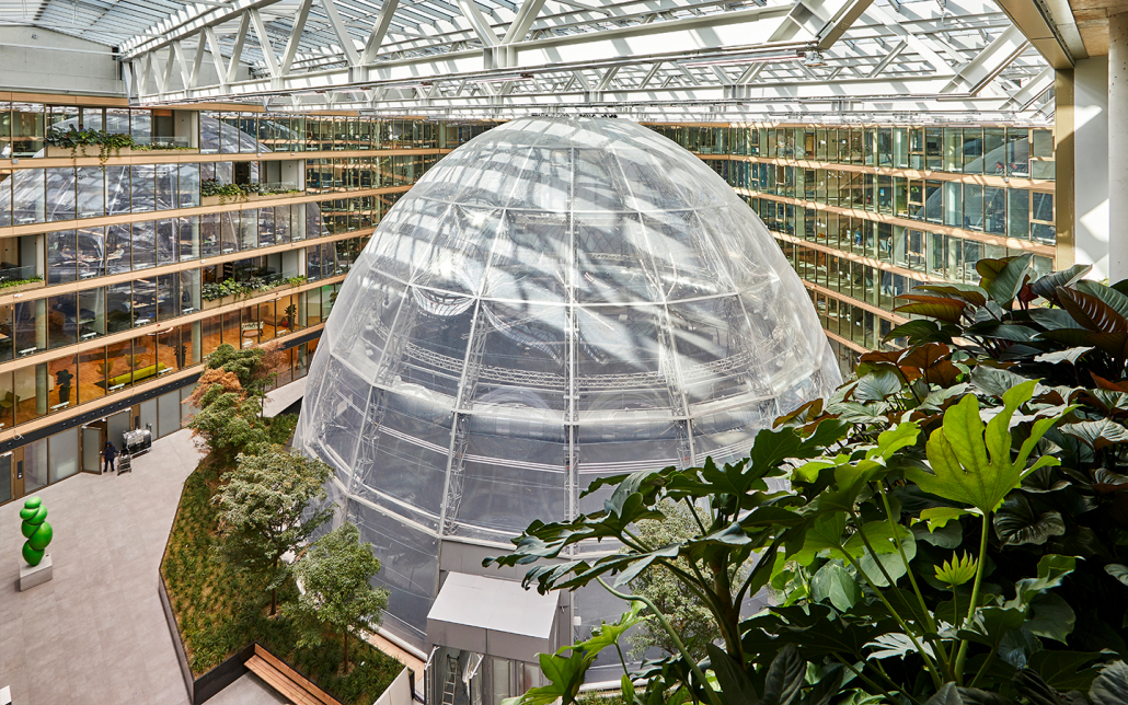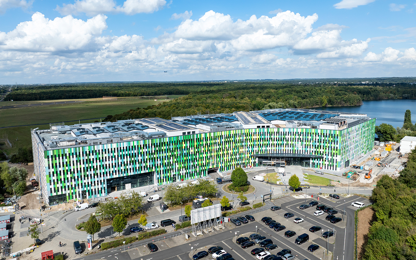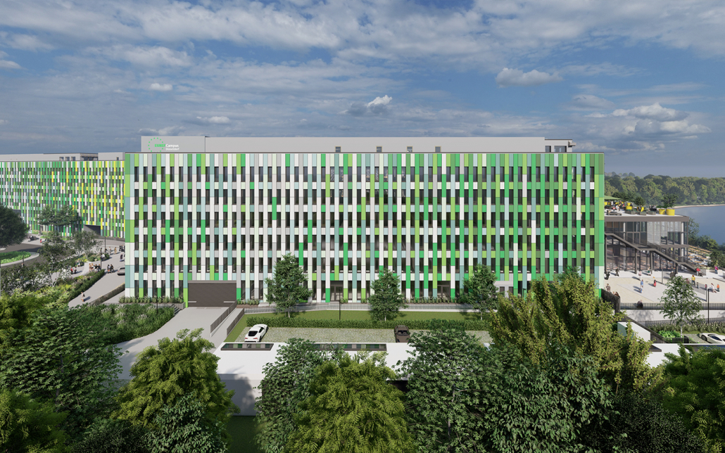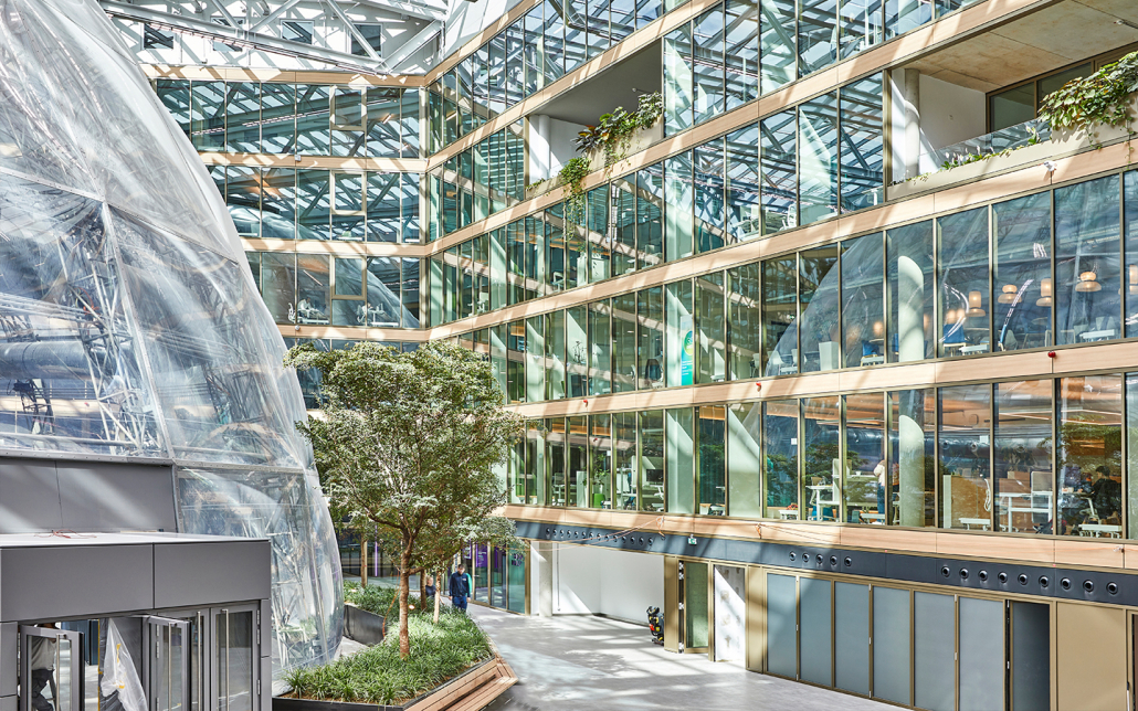 Die EUREF AG stellt sich der Herausforderung: So ist ein Gebäude als grüner Innovationscampus geplant, dessen innenliegende Freifläche mit einem transluzenten Solarglasdach versehen wird, sodass ein grüner Innenraum entsteht. Pflanzen fördern ein gutes Klima, unterstützt durch die Dachkonstruktion und besondere Lüftungstechnik. Die Luft für das Gebäude wird nach einem neuartigen Verfahren ionisiert, ohne dass dabei Ozon entsteht – saubere Luft für ein angenehmes Arbeitsklima.
